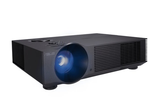 Справочно проектор ASUS H1: тип проектора для домашнего кинотеатра, матрица DLP, FullHD (1920x1080), светодиодный, яркость 3000 ANSI лм, контраст 800:1, расстояние 1.2-5.7 м, экран 40-200", LAN